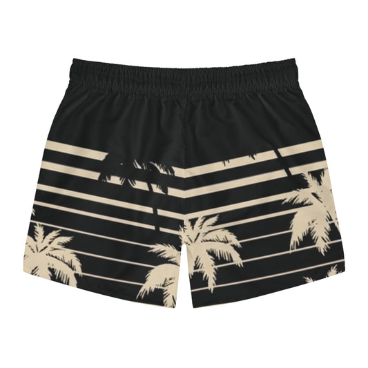 Palm Stripe Swim Trunks — Vintage Beach Black and White Print AOP