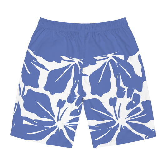 Board Shorts — Blue Hibiscus Floral Swim Trunks