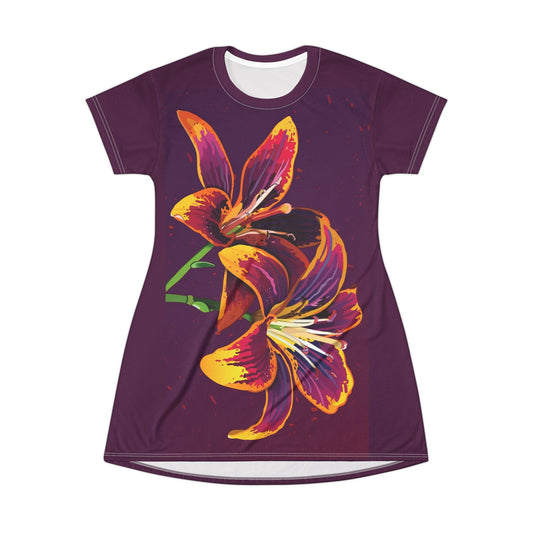 Purp T-Shirt Dress with a Colorful Lily Flower