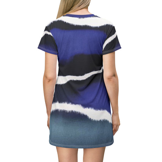 Tie Dye T-Shirt Dress - Navy, Black and White Colors